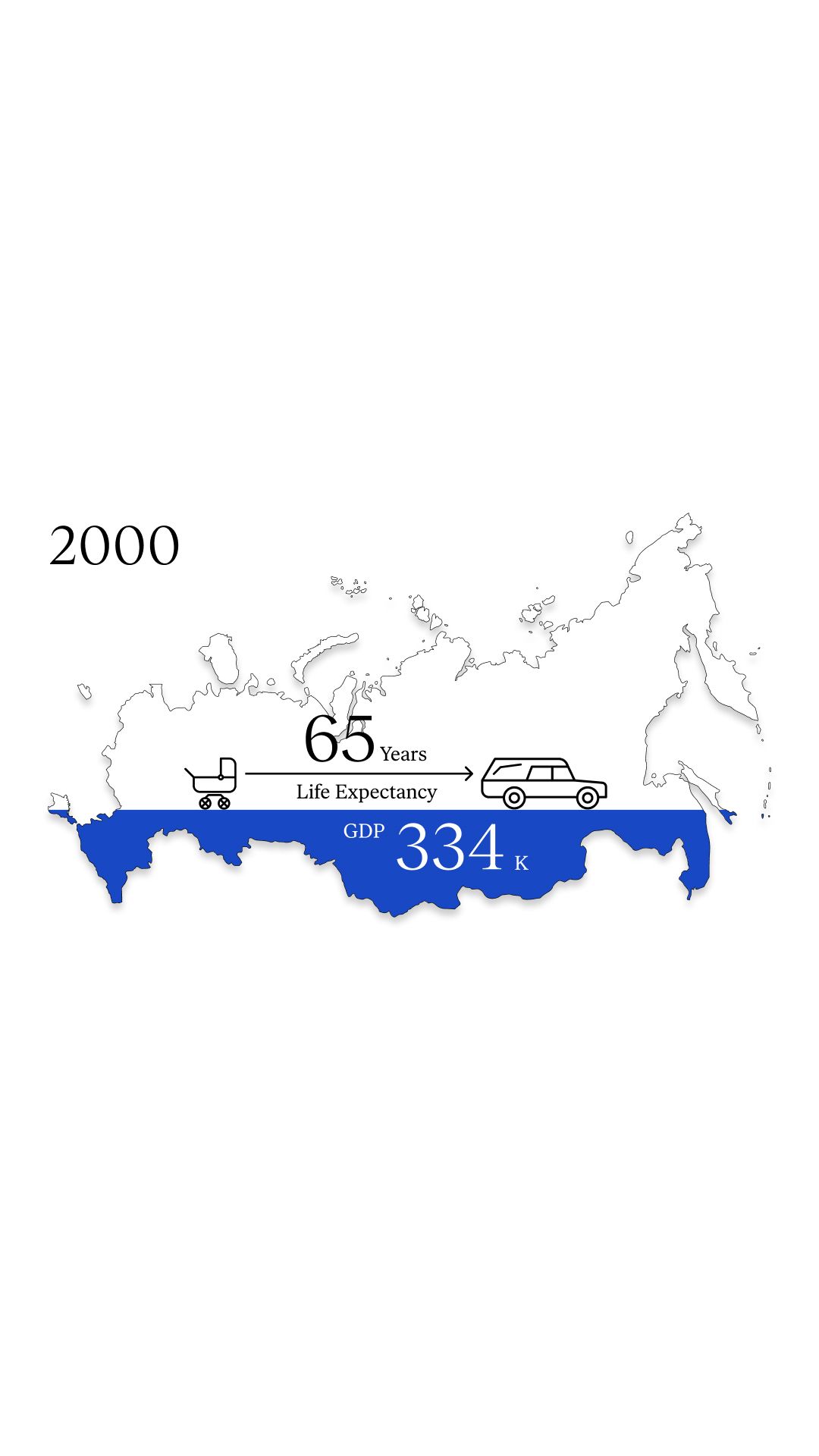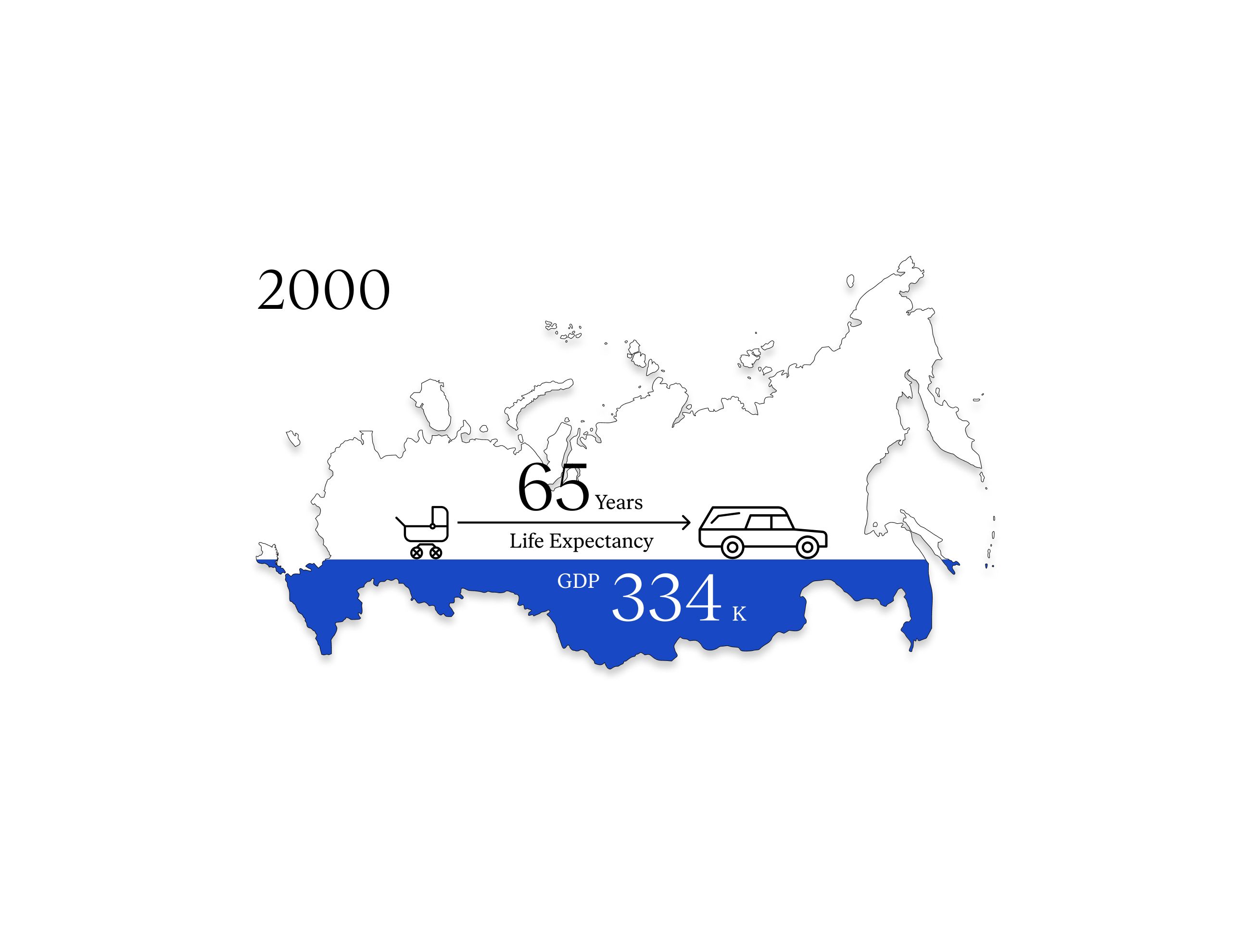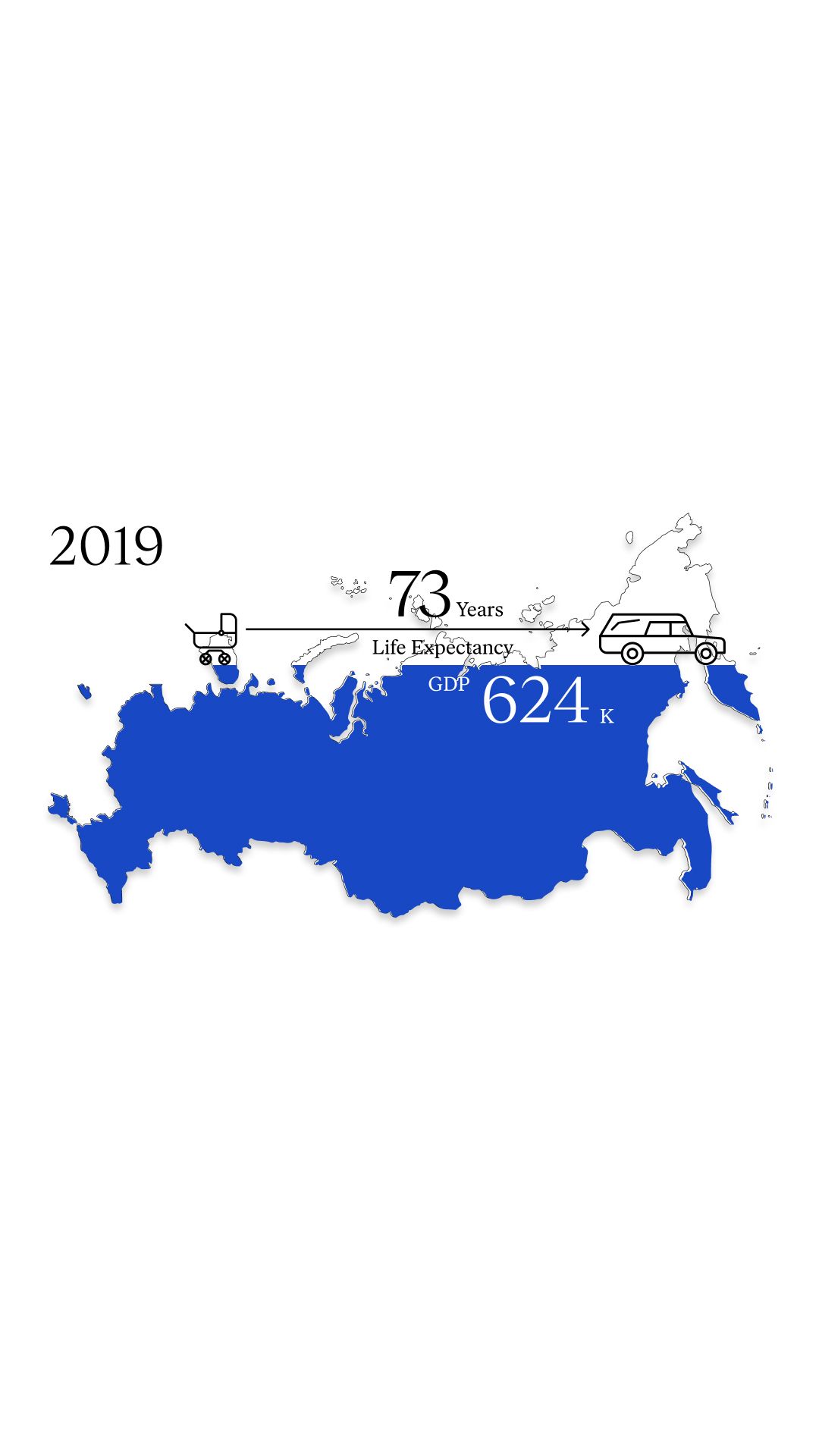 The increased public goods provision became readily apparent. In particular, the rapid increase of life expectancy at birth (basic medical care indicator) from 65 years in 2000 to 69 years in 2010 and 73 years in 2019 appears to be the strongest indicator for the social public goods delivery sub-index. The graph below illustrates Russia's increase in GDP per capita (constant LCU) as defined by The World Bank, against the increase in life expectancy.